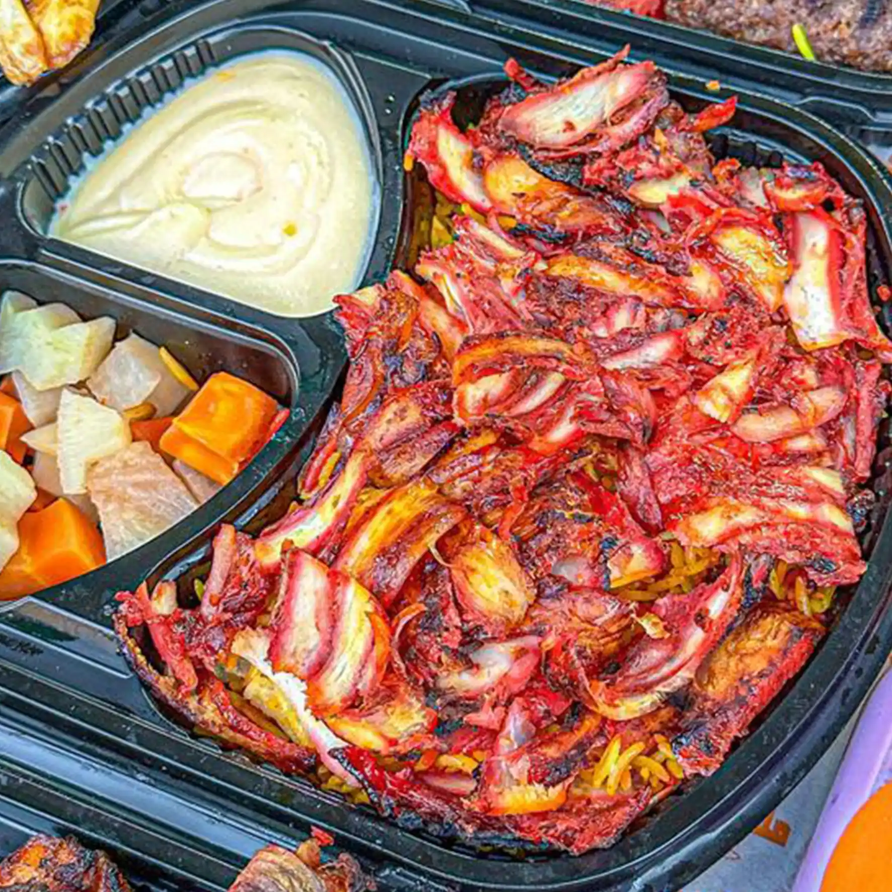 6ق تقدم مع أرز + عيش + مخلل + صوص