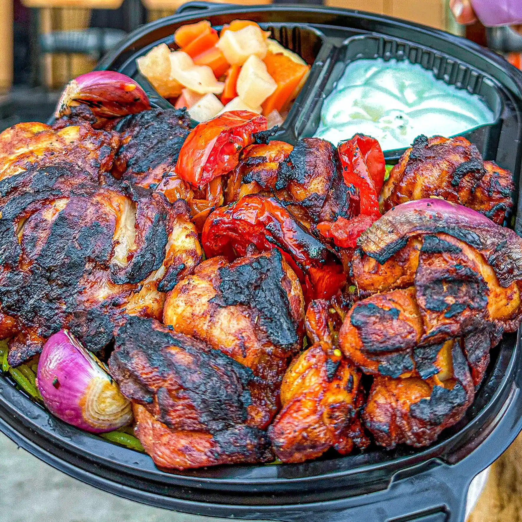 شاورما تندوري - بطاطس - شيش تندوري - هالبينو - جبنة موزاريلا - تومية حار
