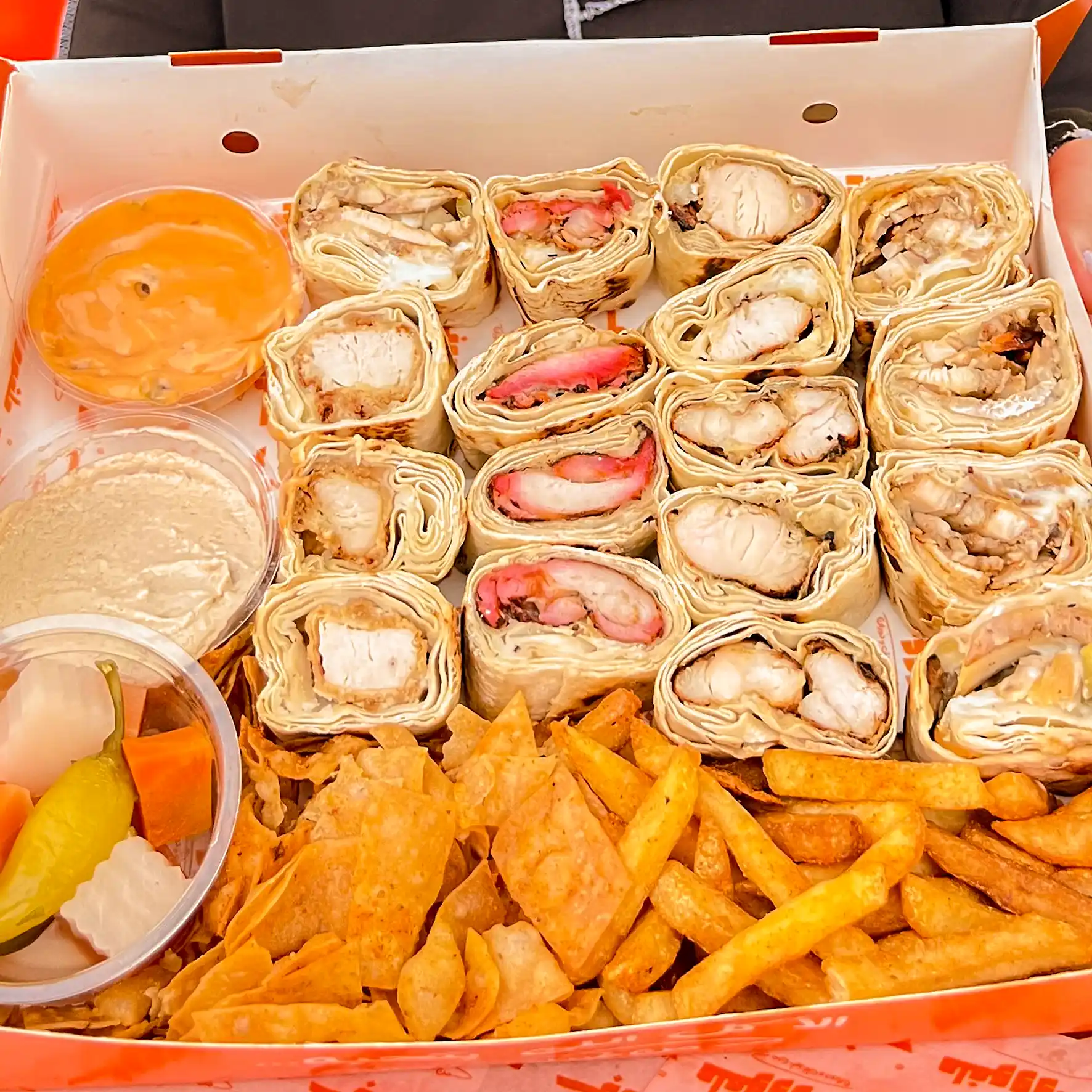 30 قطعة من اختيارك + بطاطس + + 2 صوص + مخلل عيش محمص